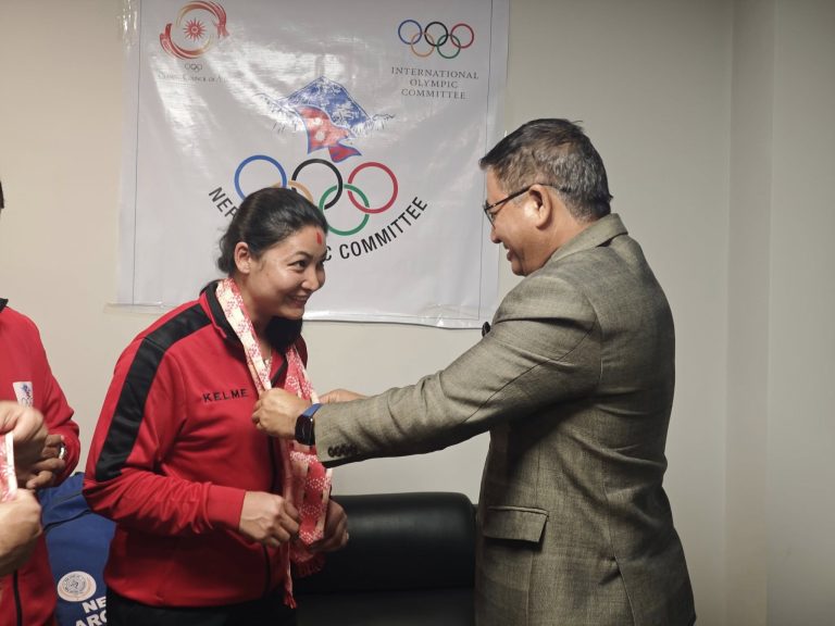 काठमाडौँ। नेपाल ओलम्पिक कमिटी (एनओसी)का अध्यक्ष जीवनराम श्रेष्ठले बुधबार २४ औँ एसियन आर्चरी च्याम्पियन्सीपमा सहभागी हुने नेपाली खेलाडी तथा विश्व आर्चरी कङग्रेसमा सहभागी हुने नेपालका प्रतिनिधिलाई शुभकामनासहित विदाइ गरेका छन् । विश्व आर्चरी कङग्रेस र विश्व आर्चरी च्याम्पियन्सीप बंगलादेशको ढाकामा हुँदैछ । आर्चरी कङग्रेस नोभेम्बर ६ देखि ८ तारिख र