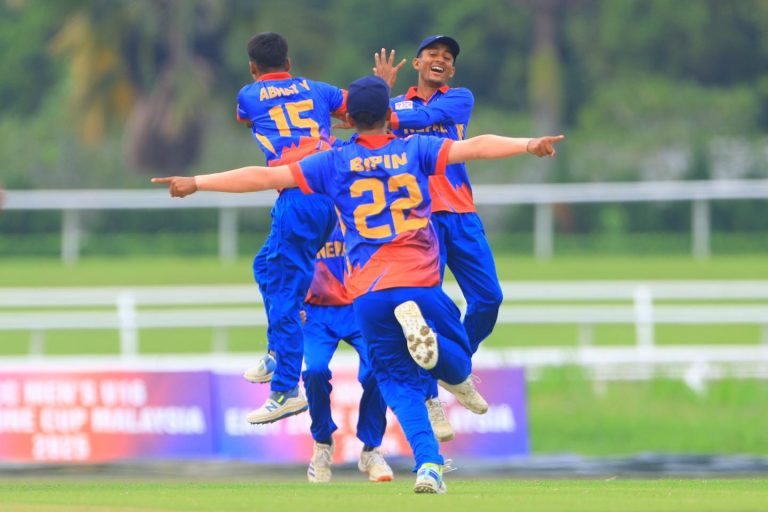 काठमाडौं । मलेसियामा जारी एसीसी पुरुष यू–१६ इस्ट जोन कप क्रिकेटको फाइनलमा अहिले नेपाल र सिंगापुरबीच प्रतिस्पर्धा जारी छ । मलेसियाको बांगीस्थित क्रिकेट मैदानमा भइरहेको फाइनलमा नेपालले टस हारेपछि पहिले बलिङ गर्नुपरेको छ । सिंगापुरले ब्याटिङ गरिरहेको छ । नेपाल साविक विजेता पनि हो । उपाधि रक्षा गर्ने लक्ष्य नेपालको