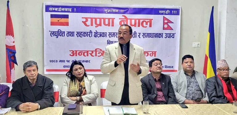 काठमाडौं । राप्रपा नेपालका अध्यक्ष कमल थापाले सहकारी र लघुबित्त सम्बन्धि समस्याको समाधान गर्न सरकार उदासिन भएको भन्दै तत्काल समस्या समाधानको लागि ध्यान नदिए परिस्थिति बिष्फोटक हुने चेतावनी दिएका छन् । समस्याको समयमै यथोचित ढङ्गले सम्बोधन गर्न नसके अर्थतन्त्र धराशायी हुने तथा समग्र आर्थिक क्षेत्रमा नकारात्मक प्रभाव पर्ने भन्दै थापाले