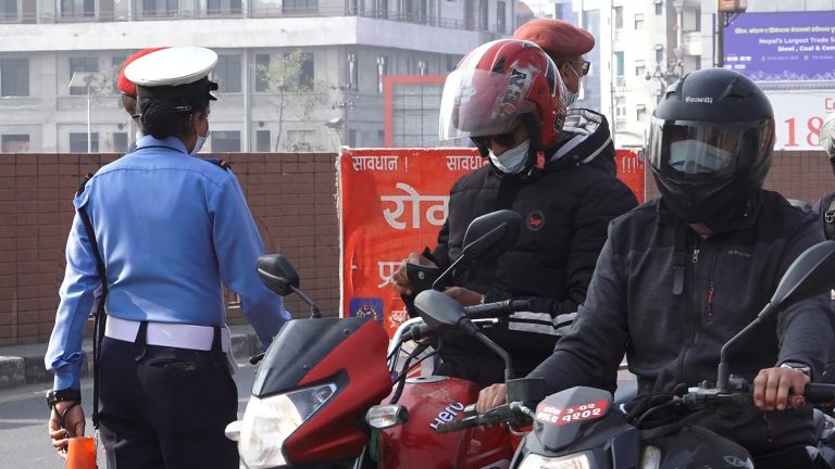 काठमाडौँ । ट्राफिक प्रहरीले काठमाडौँ उपत्यकाभित्र सवारी नियम उल्लङ्घन गर्ने आठ लाख ७६ हजार एक सय ४१ सवारी साधनलाई कारबाही गरेको छ । काठमाडौँ उपत्यका ट्राफिक प्रहरी कार्यालयको टोलीले चालु आर्थिक वर्षमा काठमाडौँ, भक्तपुर र ललितपुरमा ट्राफिक नियम उल्लङ्घन गर्ने सवारी साधनलाई कारबाही गरेको हो । कार्यालयका प्रवक्ता, प्रहरी वरिष्ठ