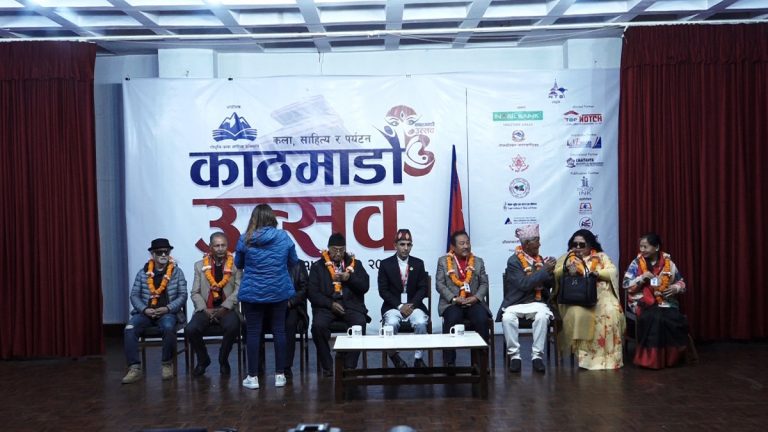काठमाडौँ । कला, साहित्य र पर्यटनसम्बन्धी काठमाडौं उत्सव शुरु भएको छ । शुक्रवार काठमाडौंको पर्यटन बोर्डमा उत्सव शुरु भएको हो । राष्ट्रिय कला साहित्य प्रतिष्ठानको आयोजनामा उत्सव शुरु भएको हो । कार्यक्रममा नेपाल प्रज्ञा प्रतिष्ठानका कुलपति भूपाल राई, वरिष्ठ साहित्यकार वैरागी काईंला, अनुप बराल लगायतका साहित्यकारहरुको उपस्थिति रहेको छ ।