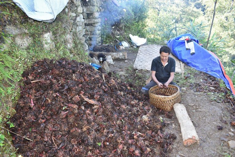 बागलुङ । मुलुक चाडबाड र निर्वाचनको माहोलमा रमाइरहेको समयमा बागलुङका किसान भने अलैँची टिप्न व्यस्त छन् । व्यस्तताका बीच पनि किसानहरुलाई दुःख गरी उब्जाएको अलैँचीले बजारमा उचित मूल्य नपाउने हो कि भन्ने चिन्ताले समेत पिरोलेको छ । अलैँचीको मूल्य घट्न थालेपछि बागलुङका किसान मर्कामा परेको गलकोट नगरपालिका–१ का ‘अलैँची ब्लक’