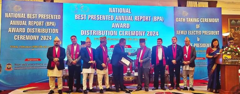 काठमाडौं । चार्टड एकाउन्टेन्ट संस्थाले यस वर्षको राष्ट्रिय उत्कृष्ट वार्षिक प्रतिवेदन अवार्ड २०२४ कृषि विकास बैंकलाई प्रदान गरेको छ । संस्थाले प्रत्येक वर्ष उत्कृष्ट बैंकलाई यो सम्मान प्रदान गर्दै आएको हो । यस वर्ष कृषि विकास बैंक लिमिटेड सिल्भर अवार्ड प्राप्न गर्न सफल भएको हो । इन्टिच्युट अफ चार्टर्ड एकाउन्टेन्स