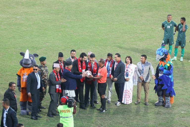 काठमाडौँ । प्रधानमन्त्री केपी शर्मा ओली तेश्रो केपी ओली कप फुटबल च्याम्पियनसिपको समापन कार्यक्रममा सहभागी हुुनुुभएको छ । त्रिपुुरेश्वरस्थित दशरथ रंगशालमा भइरहेको समापन कार्यक्रममा इटलीका अन्तर्राष्ट्रिय गोलरक्षक जियानलुुइजी बुफोन प्रमुख अतिथिका रुपमा उपस्थित हुनुुहुन्छ । रंगशालाको खचाखच दर्शकबीच भइरहेको कार्यक्रममा त्रिभुवन आर्मी क्लव र मछिन्द्र फुटबल क्लवबीच फाइनल खेल हुँदैछ