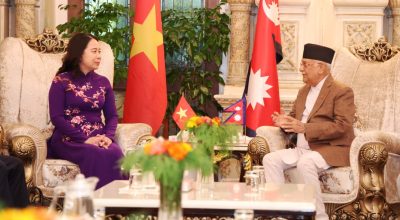 काठमाडौँ । प्रधानमन्त्री केपी शर्मा ओली र नेपाल भ्रमणमा रहनुभएका समाजवादी गणतन्त्र भियतनामका उपराष्ट्रपति भो थि आन सुआनबीच शिष्टाचार भेटवार्ता