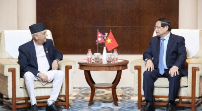थियानजिन । प्रधानमन्त्री केपी शर्मा ओली र समाजवादी गणतन्त्र भियतनामका प्रधानमन्त्री फाम मिन चिङबीच चीनको थियानजिनमा दुईपक्षीय भेटवार्ता भएको छ