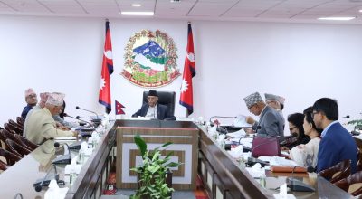 प्रधानमन्त्री केपी शर्मा ओलीसँग चालु आर्थिक वर्षमा गरिने मुख्य काम र हासिल हुने उपलब्धिका लागि उपप्रधानमन्त्रीद्वय, मन्त्रीहरु र मुख्यसचिवबीच आज