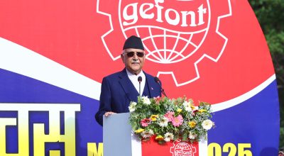 प्रधानमन्त्री केपी शर्मा ओलीले मजदुरहरूको रगतले देशको झन्डा रातो भएको बताउनुभएको छ ।