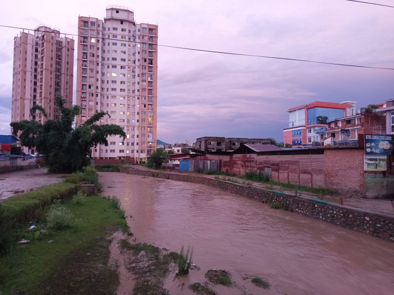 ललितपुरको कोटकु खोलाको सतह बढ्यो, सिटी स्केप अपार्टमेन्ट डुबानमा