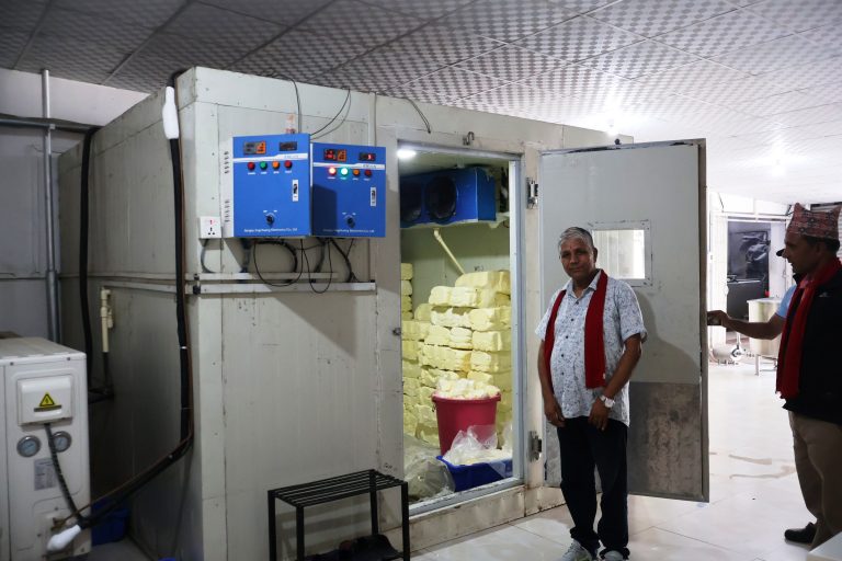 गलकोट, (बागलुङ) । बागलुङमा घ्यूको उचित तापक्रममा भण्डारणका लागि १० टन क्षमताको चिस्यान केन्द्र ९कोल्ड स्टोर० निर्माण गरी सञ्चालनमा ल्याइएको छ । जिल्लामा किसानको दूधको सङ्कलन, प्रशोधन र बजारीकरण गर्दै आएको बागलुङ दूग्ध सहकारी सङ्घले स्थापना गरेको उद्योगमा रु २० लाखको लागतमा घ्यू कोल्ड स्टोर बनाइएको हो । पशुपन्छी तथा