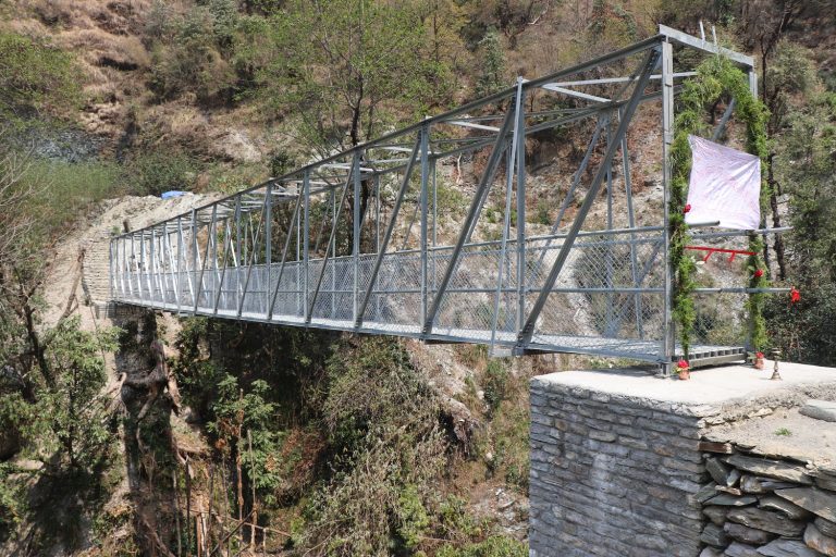 म्याग्दी । रघुगङ्गा गाउँपालिका–८ कुइनेको कोसेरा खोलामा ‘स्टिल ट्रस’ प्रविधिको पुल निर्माण भएको छ । रु ३३ लाख २४ हजार एक सय ६७ को लागतमा निर्माण भएको ३२ मिटर लामो पुलबाट एक सय घरपरिवारका ४८५ जनसङ्ख्या लाभान्वित भएका उपभोक्ता समितिका अध्यक्ष दिनेश छन्त्यालले जानकारी दिनुभयो । “खोलामा बाढी आउँदा जोखिम
