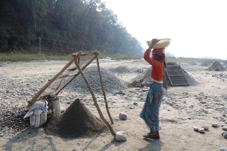 कञ्चनपुर । गाउँ नजिकैको चुरे पर्वतमा सूर्य नउदाउँदै कृष्णपुर नगरपालिका–२ खल्लागोठका भीम गिरी श्रीमतीसँगै दोदा (मछेली) नदीको बगरमा पुगिसकेका हुन्छन् । हातमा फरुवा, गैँटी, कोदालो बोकेर नदीमा पुग्ने गिरी दम्पती बालुवा, गिट्टी निकाल्दै तारजालीमा छान्ने कार्य गर्नुहुन्छ । बालुवा एकातर्फ र गिट्टी अर्कातर्फ निकालेर थुप्रो लगाउनुहुन्छ । गिरी दम्पतीको यो