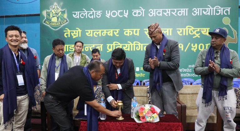 काठमाडौँ। नखिपोट युथ क्लबको आयोजना तथा नखिपोट ब्याडमिन्टन सर्कलको सह–आयोजनामा तेश्रो यलम्बर राष्ट्रव्यापी खुला ब्याडमिन्टन प्रतियोगिता शुक्रबारदेखि सुरु भएको छ । प्रतियोगिताको राष्ट्रिय खेलकुद परिषद्का सदस्य–सचिव टंकलाल घिसिङले एक कार्यक्रमबीच उद्घाटन गरे । सो अवसरमा राष्ट्रिय महिला फुटबल टोलीकी प्रीति राईलाई आयोजकले नगद २५ हजारसहित सम्मान गरेको थियो । ललितपुर