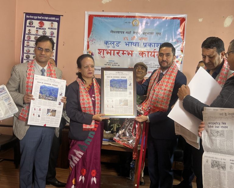 काठमाडौँ। सञ्चार तथा सूचना प्रविधिमन्त्री जगदीश खरेलले समावेशी नेपाल बनाउने अभियान जारी रहेकाले सबैको हातेमालो आवश्यक रहेको बताउनुभएको छ । काठमाडौँको गोकणेश्वर–३ मा आज आयोजित गोरखापत्रको बहुभाषिक पृष्ठ नयाँ नेपालअन्तर्गत थपिएको कुलुङ भाषा प्रकाशन शुभारम्भ गर्नुहुँदै मन्त्री खरेलले देश निर्माणको अभियानमा सबै एकजुट भएर लाग्नुपर्नेमा जोड दिनुभयो । मन्त्री खरेलले