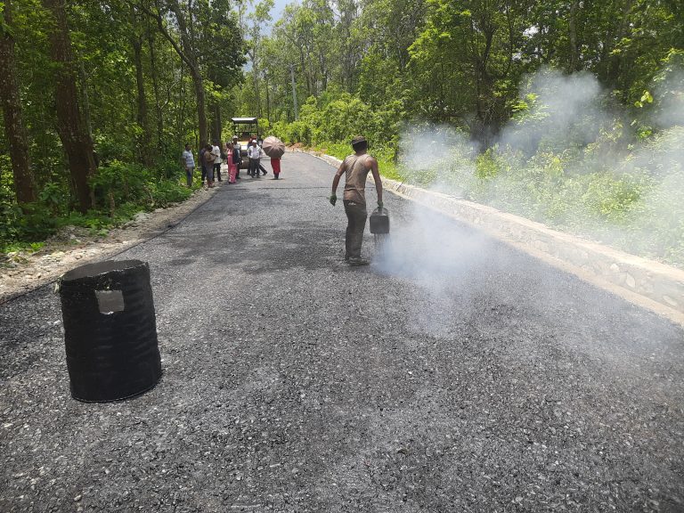 गोरखा। गोरखा नगरपालिकास्थित मझुवा–बैटारी–हटिया सडकखण्डमा ट्र्याक खुलेको ३३ वर्षपछि कालोपत्रको काम सुरु भएको छ । उक्त नगरपालिका–१३ देउराली र पालुङटार नगरपालिका–८, रातमाटे जोड्ने सडकखण्डमध्ये जैकोटदेखि घोरथुम्कासम्म सडक कालोपत्र सम्पन्न छ । गोरखा-१३ की वडाध्यक्ष मित्रा परियारले साना सहरी विकास कार्यालय कास्कीबाट विनियोजित बजेटमार्फत यहाँ चार सय मिटर सडक कालोपत्रको काम