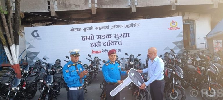 काठमाडौँ। गोल्छा ग्रुपले काठमाडौँ उपत्यका ट्राफिक प्रहरी कार्यालयलाई २० थान मोटरसाइकल हस्तान्तरण गरेको छ । वर्तमान परिस्थितिमा स्रोत साधनको अभावले ट्राफिक व्यवस्थापन तथा सुरक्षित आवागमनमा परिरहेको असरलाई मध्यनजर गर्दै गोल्छा ग्रुपले आज काठमाडौँ उपत्यका ट्राफिक प्रहरी कार्यालयमा आयोजित एक कार्यक्रमका बीच २० थान (पल्सर १५० सिसी) मोटरसाइकल प्रदान गरेको ट्राफिक