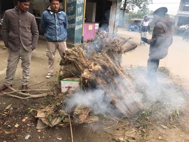 कञ्चनपुर । कञ्चनपुरमा शीतलहरका कारण चिसो बढेकाले आगो ताप्न स्थानीय तहहरूले चोक–चोकमा मुढा उपलब्ध गराएका छन् । सामुदायिक वन र