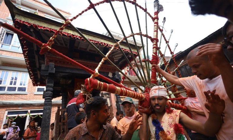 भक्तपुर । भक्तपुरमा आठ रात नौ दिनसम्म चल्ने बिस्केट जात्राको अवसरमा आज बिहान ११ बजे भक्तपुरको पोटरीस्क्वायरस्थित कुमाले टोलमा हात