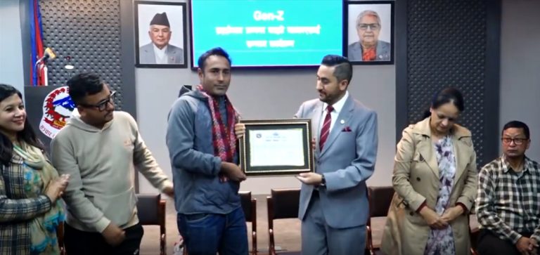 काठमाडौँ। सरकारले जेनजी आन्दोलनका क्रममा घाइते भएका पत्रकारहरूलाई नगदसहित सम्मान गरेको छ । सञ्चार तथा सूचना प्रविधि मन्त्रालयले गत भदौ २३ र २४ गतेको जेनजी आन्दोलनको रपोर्टिङका क्रममा घाइते पत्रकारलाई सम्मान गरेको हो । मन्त्रालयमा आज आयोजित एक कार्यक्रममा सञ्चार तथा सूचना प्रविधिमन्त्री जगदीश खरेलले चार जना घाइते पत्रकारलाई सम्मान