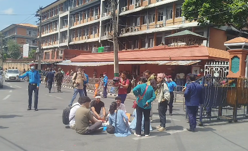 पास नदिएको भन्दै जेनजी आन्दोलनमा घाइतेहरु सिंहदरबार गेटमा धर्ना बसेका छन् ।