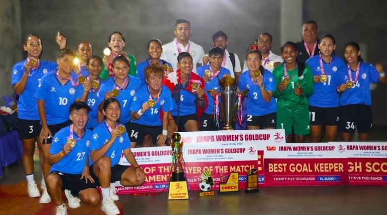 झापा। शिवसताक्षीस्थित दूधे रङशालामा आज सम्पन्न एलभिडी झापा महिला गोल्डकपको उपाधि नेपाल पुलिस क्लबले जितेको छ । प्रतिस्पर्धी विभागीय टोली एपिएफ फुटबल क्लबलाई १–० गोलले पराजित गर्दै नेपाल पुलिस क्लबले उपाधि कब्जा गरेको होे । उपाधिसँगै पुलिस क्लबले नगद रु १० लाख १० हजार, मेडल र ट्रफी प्राप्त गरेको छभने