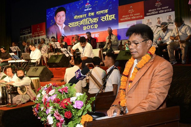 काठमाडौंँ । गीतकार टेक तामाङको सांगीतिक साँझ भव्य रुपमा सम्पन्न भएको छ । कमलादीस्थित प्रज्ञा प्रतिष्ठानको प्रेक्षालयमा असार १४ गते शनिबार २५ जना वाद्यवादकसहित प्रत्यक्ष रुपमा गीतहरु प्रस्तुत गरिएको थियो । गीतकार संघ नेपालको आयोजनामा भएको ‘गीतकार टेक तामाङ सांगीतिक साँझ –२०८२’मा डेढ दर्जन गायक गायिकाले प्रत्यक्ष रुपमा गाएका थिए