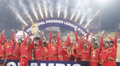 दलहरू संविधान जोगाउनेतर्फ केन्द्रित हुनुपर्छ-देवप्रसाद गुरुङ प्रधानमन्त्रीद्वारा एनपिएल विजेतालाई बधाई जिप दुर्घटना अपडेटः मृतकको सङ्ख्या चार पुग्यो राजनीतिक सङ्क्रमण अन्त्य गर्दै समयमा निर्वाचन सम्पन्न गराउनुपर्छ: महामन्त्री बुर्लाकोटी विश्वविद्यालय सुधार गर्न गैरराजनीतिक व्यक्ति नियुक्त गरिनुपर्छः मन्त्री पुन जनताको चाहनाअनुसार काम गरे देशमा समृद्धि हासिल हुन्छः मन्त्री घिसिङ विगतका गल्तीबाट शिक्षा लिँदै एकीकृत पार्टी बनाउन लागेका छौँ: संयोजक प्रचण्ड सञ्चारमन्त्री खरेलद्धारा पत्रकार सहित सुरेश रजकको परिवारसँग छलफल सुदूरपश्चिमलाई हराउँदै लुम्बिनीले जित्यो एनपीएलको उपाधि सर्वपक्षीय सरकार बनाउनुपर्ने ओलीको प्रश्तावमा विप्लव सहमत