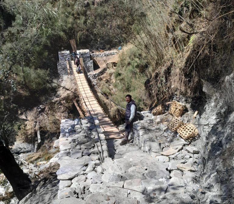 ढोरपाटन–गुर्जा पदमार्गमा काठे पुल निर्माण