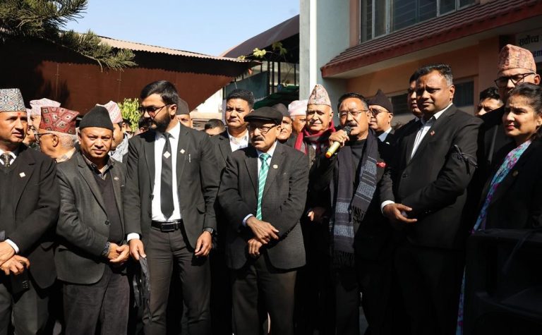 काठमाडौँ । वरिष्ठ अधिवक्ता दिनेश त्रिपाठीमाथि भएको भौतिक आक्रमणको बिरुद्धमा कालोपट्टी बाँधेर कानून व्यवसायीहरुले बिरोध जनाएका छन् । आईतवार नेपाल बार एशोसिएशनको परिसरमा कानून व्यवसायीहरुले हातमा कालोपट्टी बाँधेर बिरोध जनाएका हुन् । सर्वोच्च अदालत बार एशोसिएशनको आह्वानमा बारका सदस्यहरुले हातमा कालोपट्टी बाँधेर बिरोध जनाए । काठमाडौं जिल्ला अदालमा सहकारी ठगी