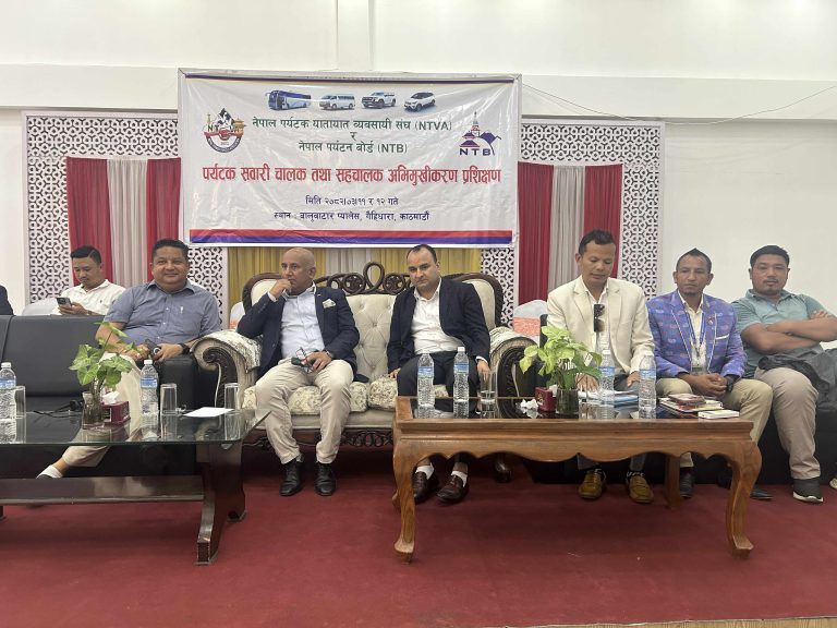 काठमाडौँ । नेपाल पर्यटन बोर्डका प्रमुख कार्यकारी अधिकृत (सीइओ) दीपकराज जोशीले पर्यटन क्षेत्रमा लगानी बढे पनि अपेक्षाकृत रुपमा विदेशी पर्यटकको सङ्ख्या बढ्न नसकेको बताउनुभएको छ । नेपाल पर्यटक यातायात व्यवसायी सङ्घ र नेपाल पर्यटन बोर्डले आज यहाँ आयोजना गरेको पर्यटक सवारीचालक तथा सहचालक अभिमूखीकरण प्रशिक्षण कार्यक्रममा उहाँले आवश्यक पूर्वाधार निर्माण