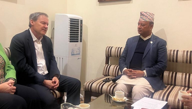 काठमाडौँ । ऊर्जा, जलस्रोत तथा सिँचाइमन्त्री दीपक खड्कासँग नेपालका लागि बेलायतका राजदूत रोब फेनबीच शिष्टाचार भेटवार्ता भएको छ । वैकल्पिक