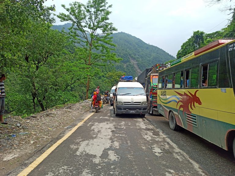 काठमाडौँ । नारायणगढ–मुग्लिन सडकमा शाखा सडकबाट आएको पहिराका कारण ठाउँठाउँमा मुख्य सडक अवरुद्ध भइरहेको छ । मुख्य सडकसँग जोडिने गरी