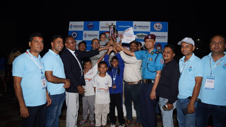 नेपालगन्ज। दोस्रो नेपालगन्ज नेशनल स्वीमिङ च्याम्पिनसीप २०२५ को उपाधि ललितपुरको सगरमाथा स्वीमिङ क्लबले जितेको छ । नेपालगन्ज स्वीमिङ क्लब बाँकेले आयोजना गरेको प्रतियोगितामा सगरमाथा क्लबले २७२ अंक ल्याएर उपाधि जितेको हो।नेपालगन्ज उपमहानगरपालिकाका नगर प्रमुख प्रशान्त विष्ट, नेपाल पौडी संघका केन्द्रीय अध्यक्ष जगतमान श्रेष्ठ र बाँकेका प्रहरी प्रमुख अंगुर जिसीले प्रथम