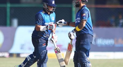 काठमाडौं । नेपाल प्रिमियर लिग (एनपीएल) को फाइनल खेलमा सुदूरपश्चिम रोयल्सका दुबै ओपनर आउट भएका छन् । निकै संघर्षपछि जनकपुर बोल्ट्सले १२ ओभरमा दुबै ओपनरलाई आउट गरेको हो । ओपनर सैफ अलि अर्धशतक बनाएर आउट भए । उनि ११ औ ओभरको अन्तिम बलमा ६९ रन बनाएर आउट भए । अर्का