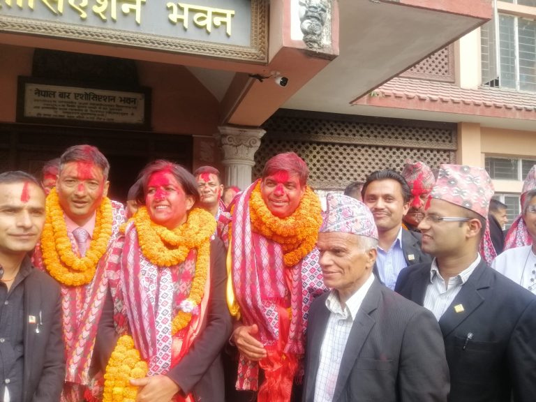 काठमाडौँ । नेपाल बार एसोसिएसनको निर्वाचनमा सत्ता साझेदार दलनिकट कानून व्यवसायीहरूको संयुक्त प्यानल विजयी भएको छ । अध्यक्ष पदमा गोपालकृष्ण घिमिरेसहित सबै पदमा सत्ता साझेदार दलनिकट उम्मेदवारहरू विजयी भएका हुन् । अध्यक्ष पदमा घिमिरेले विष्णुमणि अधिकारीलाई पराजित गरेका हुन् । घिमिरे नेपाली कांग्रेसनिकट डेमोक्रेटिक लयर्स एसोसिएसनका पूर्व अध्यक्षसमेत हुन् भने