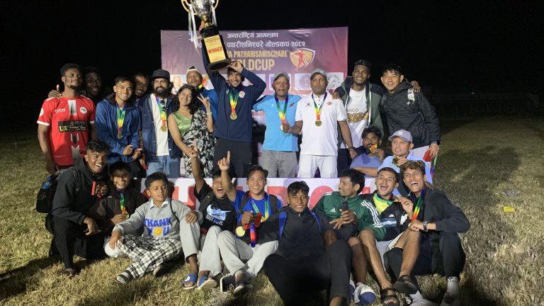मोरङ। ‘अन्तरराष्ट्रिय आमन्त्रण दोस्रो इन्ट्रा पथरी शनिश्चरे गोल्डकप २०८२’ को उपाधि सलहेस युवा क्लब सिरहाले जितेको छ । आज भएको फाइनल खेलमा आयोजक पथरी–११ लाई १–२ गोल अन्तरले पराजित गर्दै सिरहाको सलहेस युवा क्लबले उपाधि चुमेको हो । खेलको अग्रता भने पथरी–११ ले लिएको छ । खेलको १९औँ मिनेटमा पथरी–११