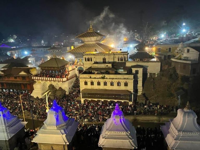 काठमाडौं । गत सोमबार रातिको धनुर्मास पूजापछि मङ्गलबार दिनभर शिवपुरी डाँडामा घाम ताप्न जानुभएका भगवान् शिव फर्किएपछि बेलुकी पशुपतिनाथ मन्दिरमै
