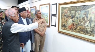 काठमाडौँ उपत्यकाको मौलिक एवं परम्परागत सामाजिक परिवेश र विविध कालखण्डका नेपाली परिघटनालाई आधार बनाएर शर्माले कोर्नुभएको चित्रकलालाई प्रधानमन्त्री ओलीले आज