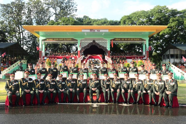 काठमाडौँ। नेपालीहरूको महान् चाड बडादशैँ २०८२ को अवसरमा नेपाली सेनाद्वारा मिति १३ आश्विनमा सैनिक मञ्च टुँडिखेलमा आयोजना हुने फूलपाती बढाई समारोहको अन्तिम तयारीको निरीक्षण प्रधान सेनापति महारथी अशोक राज सिग्देलले आज (१० आश्विन) सम्पन्न गर्नुभएको छ। निरीक्षणपछि प्रधान सेनापतिले हवाई सुरक्षा तालिम शिक्षालयलाई युनिट झण्डा हस्तान्तरण गर्नुभएको थियो। साथै, आर्थिक
