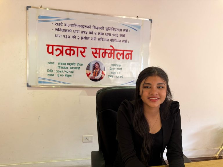 काठमाडौँ । संविधान संशोधनको बहस चलिरहेका बेला विद्यालय तहमा अध्ययनरत एक छात्राले संविधानमा भएका केही त्रुटि औँल्याउँदै त्यसलाई सच्याउन सरोकारवालाको ध्यानाकर्षण गराएकी छिन् । कास्कीको पोखरा लामाचौरस्थित श्री गण्डकी बोर्डिङ स्कूलमा कक्षा ७ मा अध्ययनरत प्रेन्सा रेग्मीले संविधानको धारा २१५ को उपधारा ९ र धारा १०२ मा भएको व्यवस्था अस्पष्ट