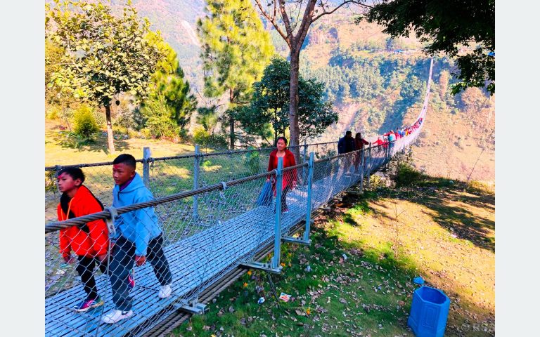 गलकोट । शुक्रबार गुल्मीको मुसिकोट नगरपालिका-४ दजाकोटको श्री पशुपति निम्न माध्यामिक विद्यालयको शैक्षिक अवलोकन भ्रमणको समूह बागलुङदेखि पर्वत जोड्ने नेपालकै सबैभन्दा लामो पुलमा आइपुग्यो । सोही दिन यस क्षेत्रमा विभिन्न स्थानबाट आमा समूह र सहकारीका समूहका पनि भ्रमण टोलीहरु आइपुगेका थिए । मङ्सिर सुरु भएपछि यहाँ शैक्षिक तथा अध्यययन अवलोकन