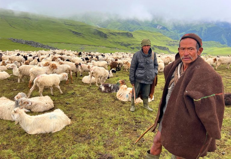 ढोरपाटन, (बागलुङ) । अग्लो पहाडको शिरमा पुराना थाङ्नाले बेरिएको गोठ । निलो त्रिपाल र बाँसको चोयाले छाएको छानो । गोठको छेउमा सुरक्षाका लागि पालिएका भोटे कुकुर र वरपर हरेका हजारौँ सङ्ख्यामा भेडाका बथान । त्यही भेडाका बथानसँगै भेटिनुहुन्छ, टेकध्वज घतान । पसिनाले निथ्रुक भिजेका शरीरका कपडा । शिरमा मैलिएको टोपी