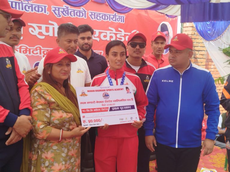 कर्णाली । कर्णाली प्रदेशको राजधानी सुर्खेत वीरेन्द्रनगरमा शनिबार सम्पन्न राष्ट्रियस्तरको खुला महिला–पुरुष १० किलोमिटर ‘मदन भण्डारी कप सडक दौड प्रतियोगिता २०८२’को उपाधि रामजी बस्नेत र पूर्णलक्ष्मी न्यौपानेले जितेका छन् । मदन भण्डारी स्पोर्टस् एकेडेमीद्वारा आयोजित प्रतियोगितामा प्रथम हुने बस्नेत र न्यौपानेले जनही रु ५०–५० हजार नगद पुरस्कार प्राप्त गरे ।