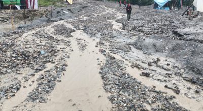 ढोरपाटन । भीषण बाढीले मध्यपहाडी लोकमार्ग अवरुद्ध भएको छ । राष्ट्रिय गौरवको आयोजना मध्यपहाडी लोकमार्गअन्तर्गत बागलुङको निसीखोला गाउँपालिका–४ स्थित कालापैराखोलामा आएको बाढीले बुर्तिबाङ–पूर्वी रुकुम खण्ड पूर्ण रुपमा अवरुद्ध बनेको हो । आइतबार दिनभर परेको वर्षाका कारण राति भीषण बाढी आएको थियो । रातिदेखि अवरुद्ध लोकमार्ग अहिलेसम्म खुलाउन नसकिएको निसीखोला–४ का