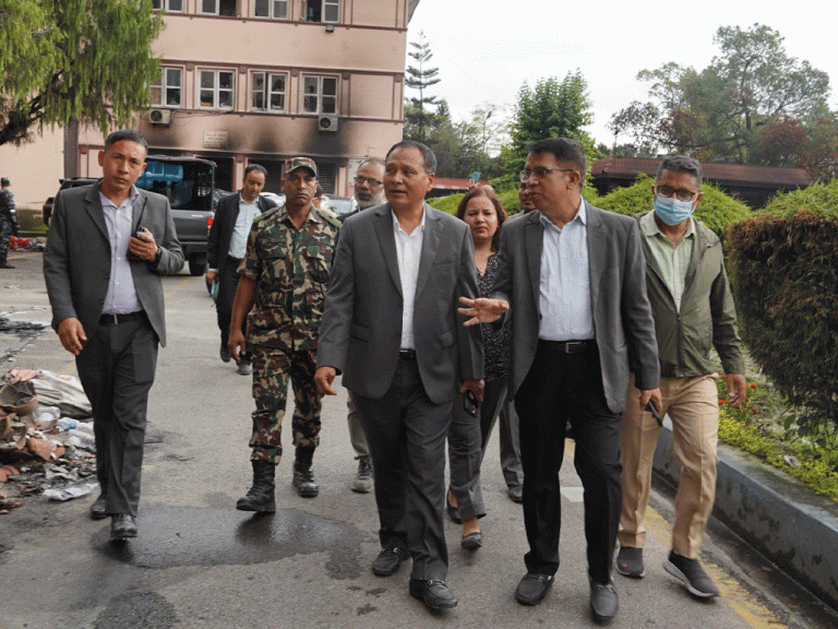 ललितपुर। ऊर्जा, जलस्रोत तथा सिँचाइमन्त्री कुलमान घिसिङ र गृहमन्त्री ओमप्रकाश अर्यालले आज ललितपुर–१८ भैँसेपाटीस्थित मन्त्री निवासको अवलोकन गर्नुभएको छ । गत भदौ २४ गते ‘जेनजी’ प्रदर्शनका क्रममा मन्त्री आवासमा आगजनी भएको थियो । मन्त्री घिसिङले अवलोकनपछि तत्काल निर्माण गर्न सकिने संरचनाका लागि काम सुरु गर्ने प्रतिबद्धता जनाउनुभयो । उहाँले भन्नुभयो, “मन्त्री