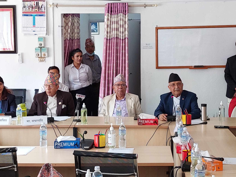 सत्तासाझेदार नेकपा (एकीकृत समाजवादी) का अध्यक्ष एवं पूर्वप्रधानमन्त्री माधवकुमार नेपालले एमाले अध्यक्ष केपी ओलीले सर्वदलीय बैठकमा पनि आफ्नो पार्टीलाई निषेध