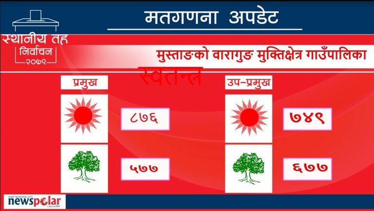 म्याग्दी । मुस्ताङको वारागुङ मुक्तिक्षेत्र गाउँपालिकाको अध्यक्ष र उपाध्यक्षमा नेकपा एमालेका उम्मेदवार विजयी भएका छन् । कागबेनीस्थित निर्वाचन अधिकृतको कार्यालयमा शनिबार दिउँसो सम्पन्न मतगणनाको अन्तिम नतिजाअनुसार गाउँपालिकाको अध्यक्षमा नेकपा एमालेका रिनजिङ नामगेल गुरुङले ८६७ मत ल्याएर विजयी हुनुभएको हो । निर्वाचन अधिकृतको कार्यालयका अनुसार उपाध्यक्षमा एमालेकी ढिकी गुरुङले ७४९ मत