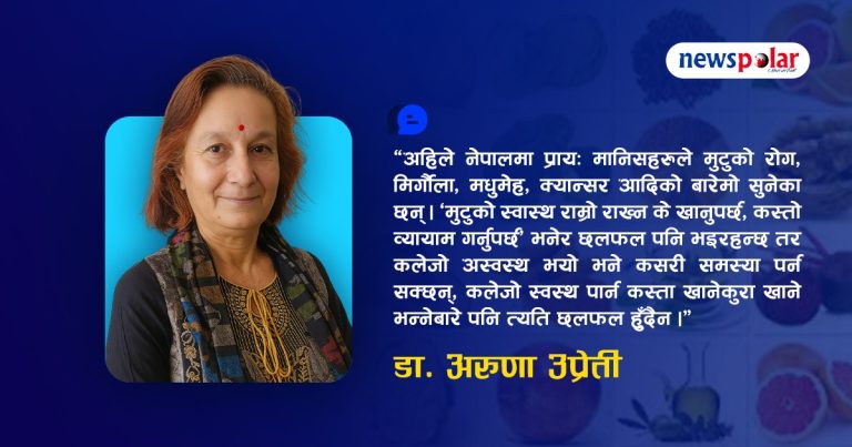 काठमाडौँ । अस्पतालमा नेपाली महिलाहरुको पेट, कलेजोको जाँच गर्दा ५७ प्रतिशत महिलाको कलेजोमा बोसोे जमेपछि भविष्यमा चाँहि स्वास्थ्यको समस्या आउन सक्ने सम्भावना हुन्छ । अहिले नेपालमा प्रायः मानिसहरुले मुटुको रोग, मिर्गौला, मधुमेह, क्यान्सर आदिको बारेमो सुनेका छन् । ‘मुटुको स्वास्थ राम्रो राख्न के खानुपर्छ, कस्तो व्यायाम गर्नुपर्छ’ भनेर छलफल पनि
