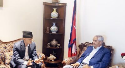 सुर्खेत । कर्णाली प्रदेश सरकारका मुख्यमन्त्री यामलाल कँडेल र नेपाली कांग्रेसका सभापति शेरबहादुर देउवाबिच भेटघाट भएको छ । कर्णालीमा सत्ता