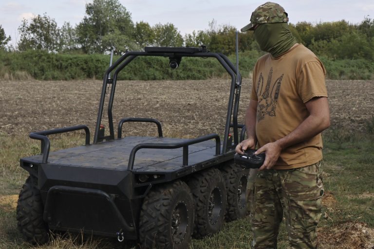 रोबोटिक गाडीमा फर्किँदै युक्रेनी सेना